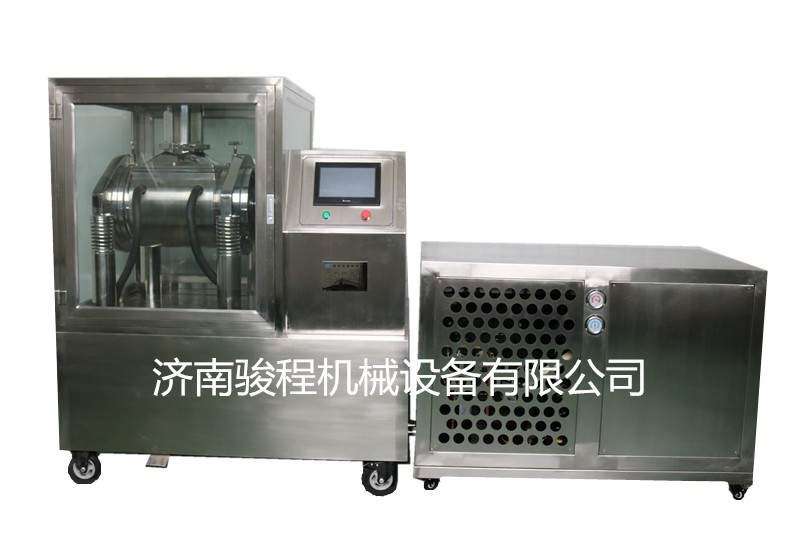 一,低溫粉碎,粉碎過程中保證低溫,通過向磨筒套內(nèi)通入冷卻水或配置制冷機來控制粉碎溫度。在粉碎原料達到低溫、粉碎機內(nèi)部為低溫情況下粉碎,物料與粉碎機內(nèi)部均呈低溫狀態(tài)。在低溫下中藥韌性出現(xiàn)均勻地降低,變得脆性。并且,中藥在快速降溫情況下,各部位由于不均勻收縮而產(chǎn)生內(nèi)應力,極易引起薄弱部位破裂和龜裂,導致物料內(nèi)部組織結(jié)合力降低,當受到一定的沖擊時,極易破碎成細粉。對于纖維狀、高韌性、高強度、含油率高、含糖量高的物料都可以達到超微粉碎細胞破壁。低溫粉碎還有利于保留粉體生物活性成分,以利于制成所需的高質(zhì)量產(chǎn)品。